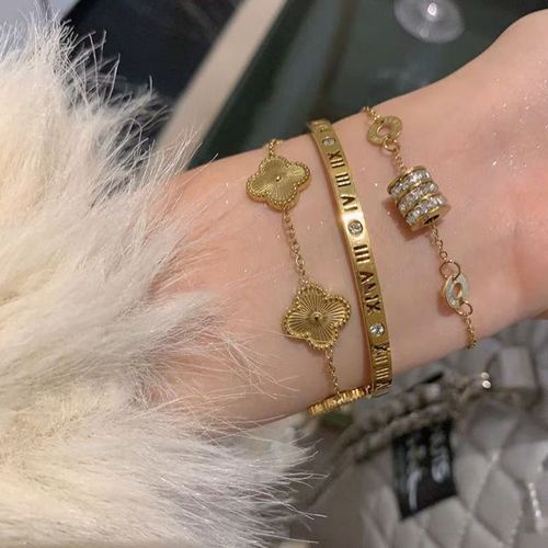 Made of titanium steel, non-fading~ Roman numeral delicate bracelet and bangle set (three-piece set)